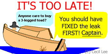 As the picture below shows, if we continue to look for our wealth sector and forsake the leak; the boat will eventually flood and sink! And all will be totally lost!